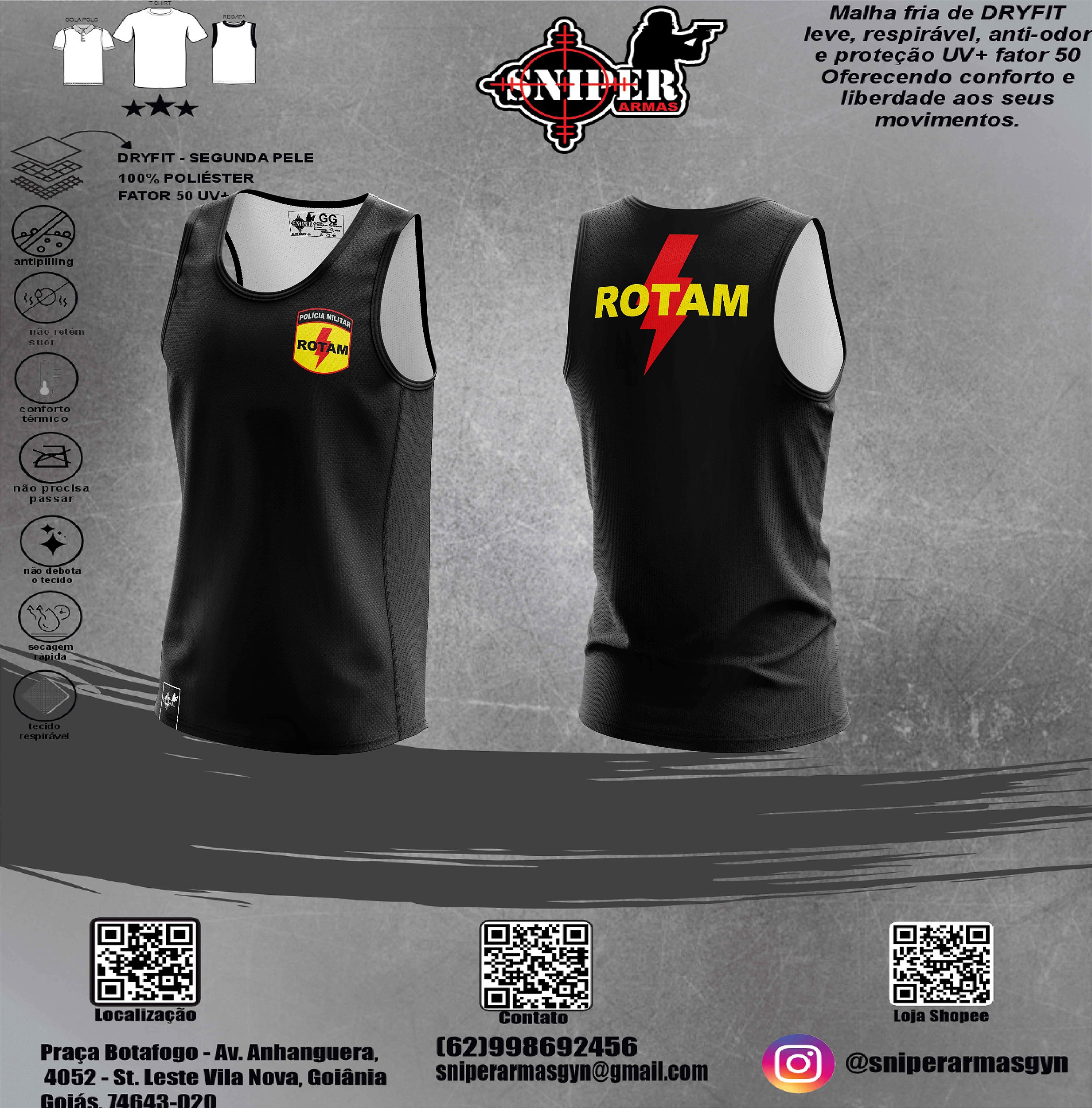• Material: Confeccionada em 100% DRY, proporcionando maciez e respirabilidade, ideal para o uso diário e em climas quentes.