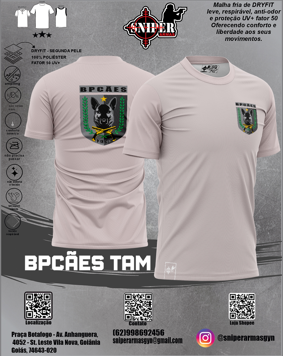 • Material: Confeccionada em 100% DRY, proporcionando maciez e respirabilidade, ideal para o uso diário e em climas quentes.