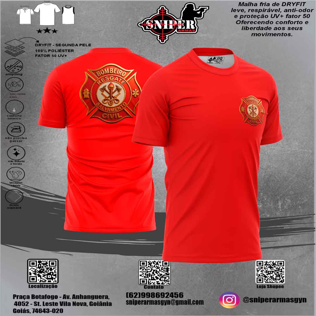 Camiseta Sniper BRASIL Bombeiro Civil 3D Caveira